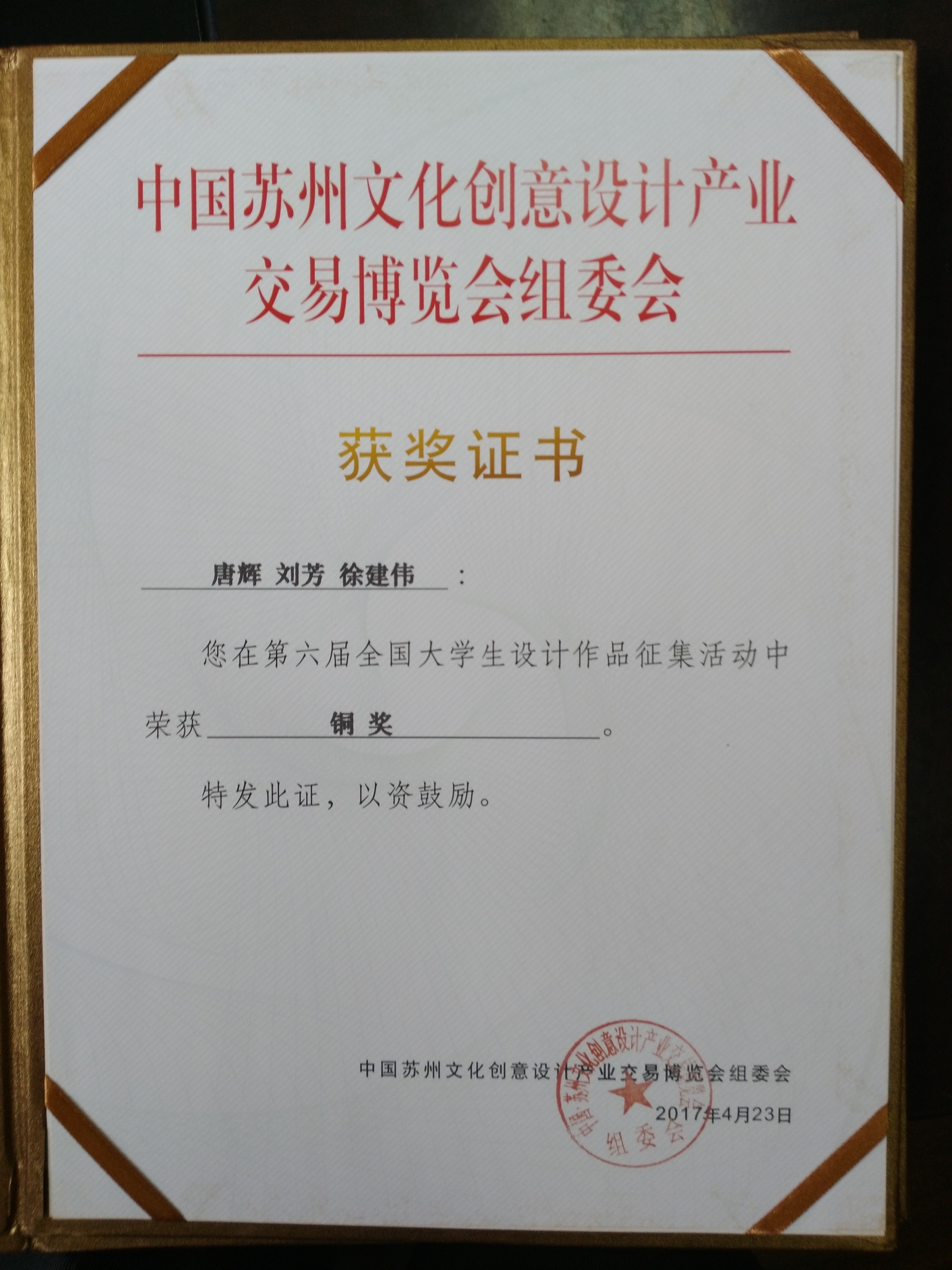 近日,从中国苏州文化创意设计产业交易博览会组委会传来喜讯,美术学生获第六届中国大学生设计大赛铜奖1项、优秀奖2项,方强华、陈丹阳2位老师荣获优秀指导老师称号。
