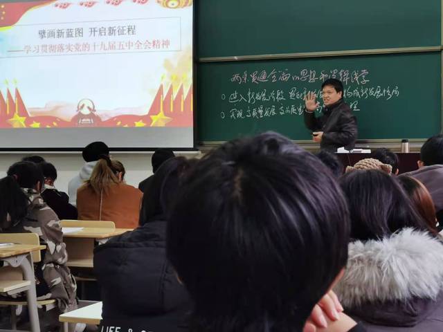 刘校长围绕着“进入新发阶段贯彻新发展理念、构成新发展格局和实现高质量发展、高品质生活、高效能治理”这两条贯通全篇的思想和逻辑线索,从十九届五中全会的会议盛况、召开背景、重大意义、主要内容、贯彻落实等五个方面,为同学们详细阐述了党的十九届五中全会的重要精神。