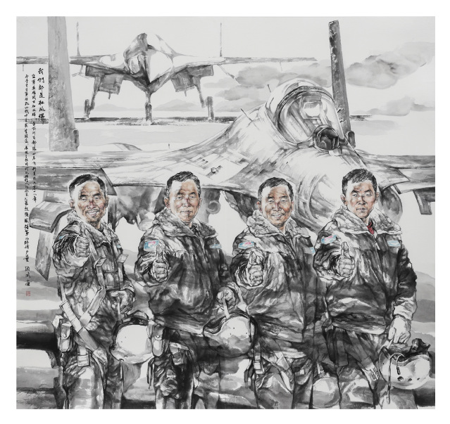 为了表现中国人民空军的辉煌历史与当代军人的英姿,我院米海鹏副教授近三年一直在空军驻昌某部实地写生采风,先后创作了《我们都是杜凤瑞》、《空军英雄杜凤瑞》、《以身许国桓树林》,以及几十幅空军战士现场水墨肖像写生作品;所创作作品均无偿捐献给部队。其中,作品《空军英雄杜凤瑞》被该部上级部门收藏并长期陈列在军史馆。