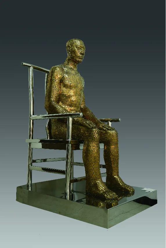 ● 2018 夏学兵作品《临摹.王的坐姿》材质:铜币、自制硬币,尺寸:235cmX175cmx115cm