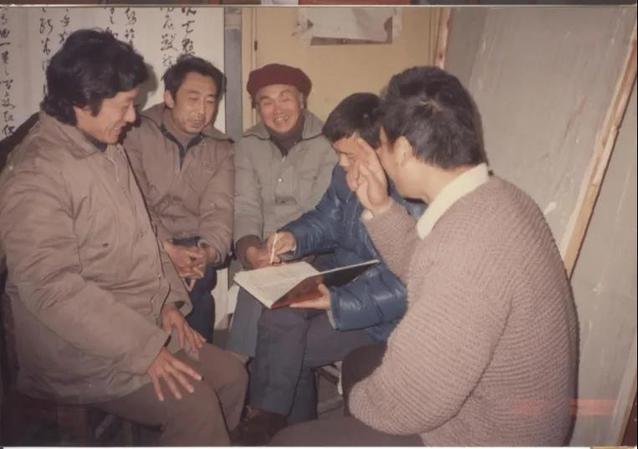 中国画教研室教师在进行教研活动(从左至右:范坚 段輗 向天野 黄洪平 丁成杰)