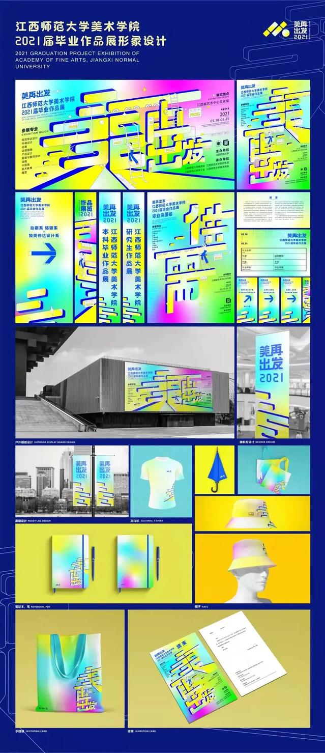 ● 2021.5 2017级视觉传达设计班董文高、刘冰雪、李运道、刘锦滨、肖雨创作《“美再出发”主题形象设计》