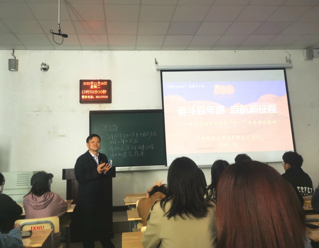 为讲好中国共产党百年历史,弘扬伟大建党精神,传承红色基因,坚守初心使命。11月16日下午,校党委委员、副校长刘俊围绕习近平总书记“七一”重要讲话精神,以“奋斗百年路 启航新征程”为题,在惟义楼教室为华亿平台2019级国画、书法教育专业同学讲授了一堂生动的形势与政策课。