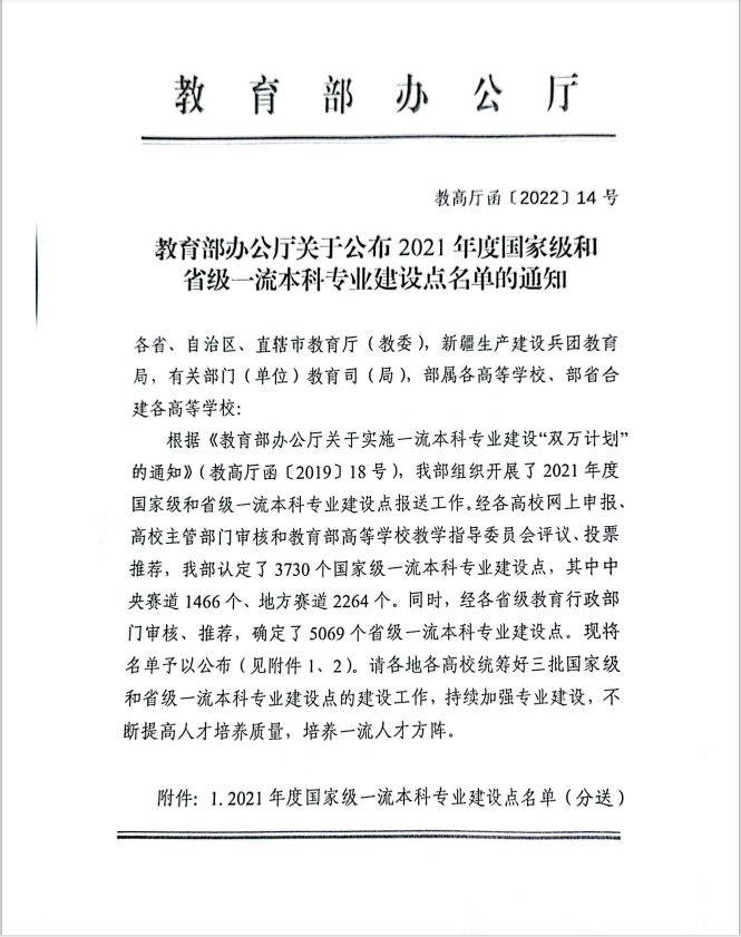 江西师范大学华亿平台2021年度获批2个教育部“双万计划”一流专业建设点