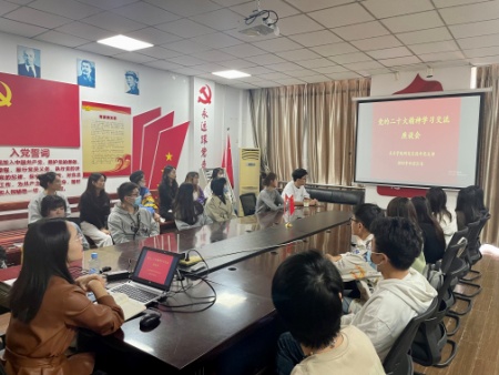 2022年10月16日,中国共产党第二十次全国代表大会在人民的热烈期盼中于北京顺利开幕。为深入学习贯彻党的二十大会议精神,引导我院研究生党员更进一步学懂弄通、落实党的二十大精神,我院研究生设计党支部于2022年10月21日在华亿平台党员活动室召开党的二十大精神学习交流座谈会。鉴于部分高年级党员同志在校外实习,本次交流活动采用线上自主学习和线下集中交流学习相结合的形式召开。