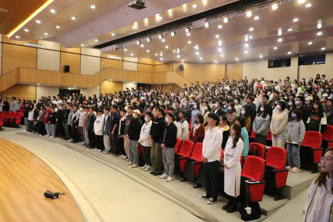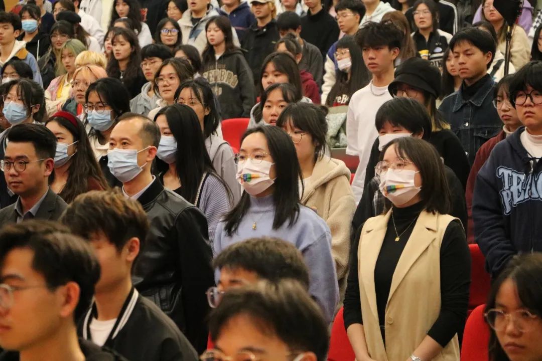 悠扬的校歌诉说往日荣耀,展望未来,我们必将砥砺前行。开学典礼不仅是一份祝福,也为大家敲响警钟,希望同学们在体验大学生活之际牢记“静思笃行,持中秉正”的校训,用青春书写灿烂华章,脚踏实地,行稳致远,进而有为。