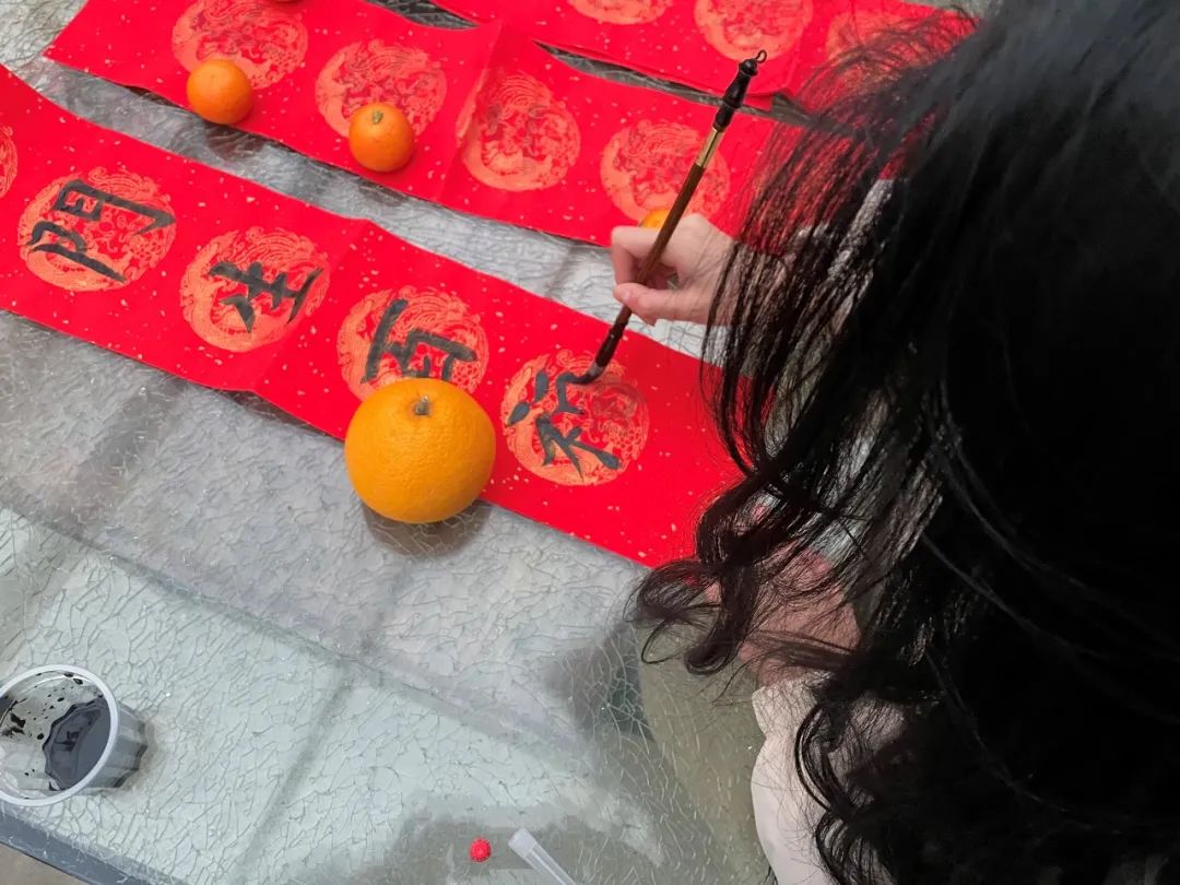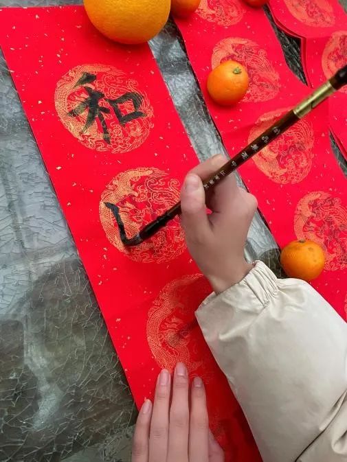 作品的名称是《平安二字值千金,和顺一门生白福》,它是通过写春联形式进行创作。通过这个作品我想表达的是手写春联是最纯粹的年味之一,在新春到来之际,我们用对联流露出自己的新年祝福。在家里的桌子铺上红纸,碗里倒上墨汁,提笔写字。每一笔都有浓浓的年味,这红纸上寄托着人们美好的新年愿景。年,是牵挂,是依恋,是情意满满,是团团圆圆,更是新的惊喜与期待。祝2023平安喜乐,兔飞猛进。