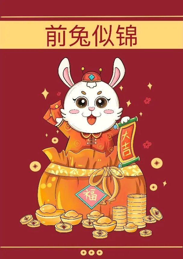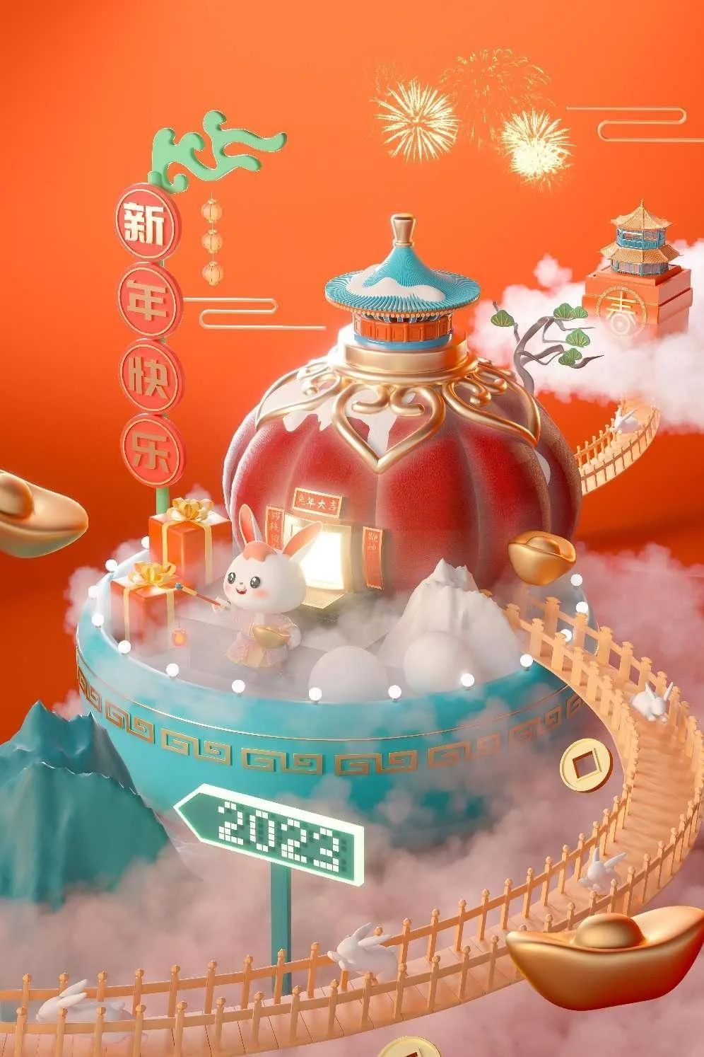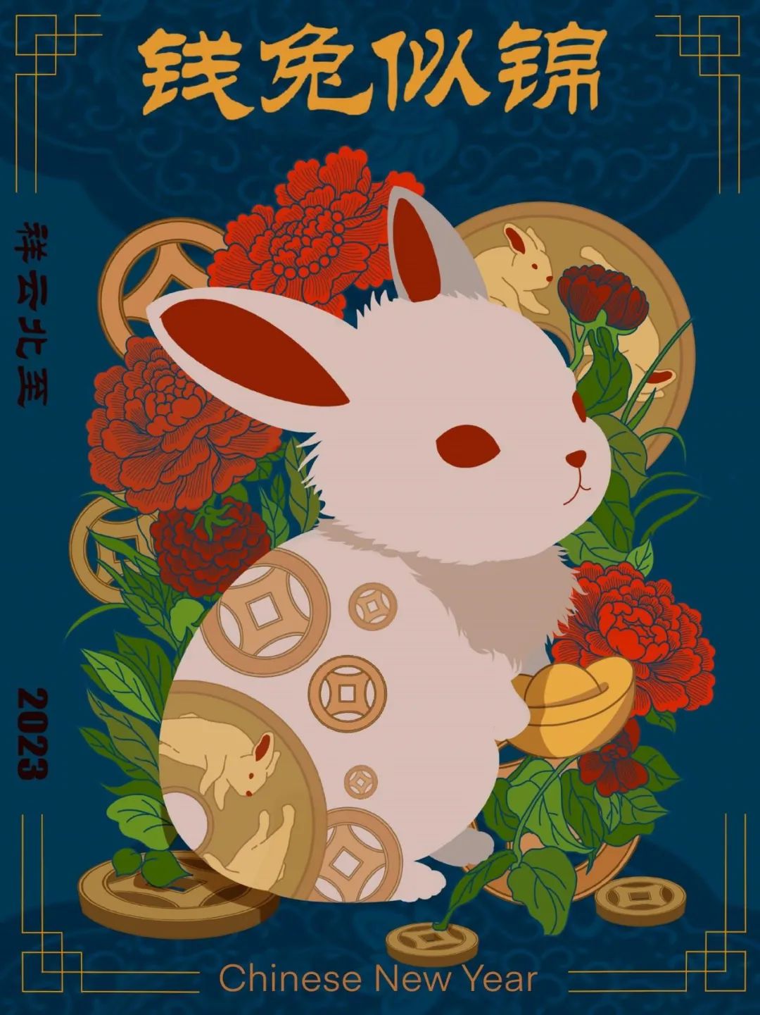 通过这个作品,我想表达的是:希望家人与同学朋友兔年都能奋发兔强、前兔无量、顺风顺水,通过不懈努力达到自己所期望的目标。愿灯笼照亮我们的前程,爆竹消去上一年大家遭遇的疾病与灾祸,铜钱带来通过付出获得的财富。愿新年胜旧年,一起迈向更好的2023!