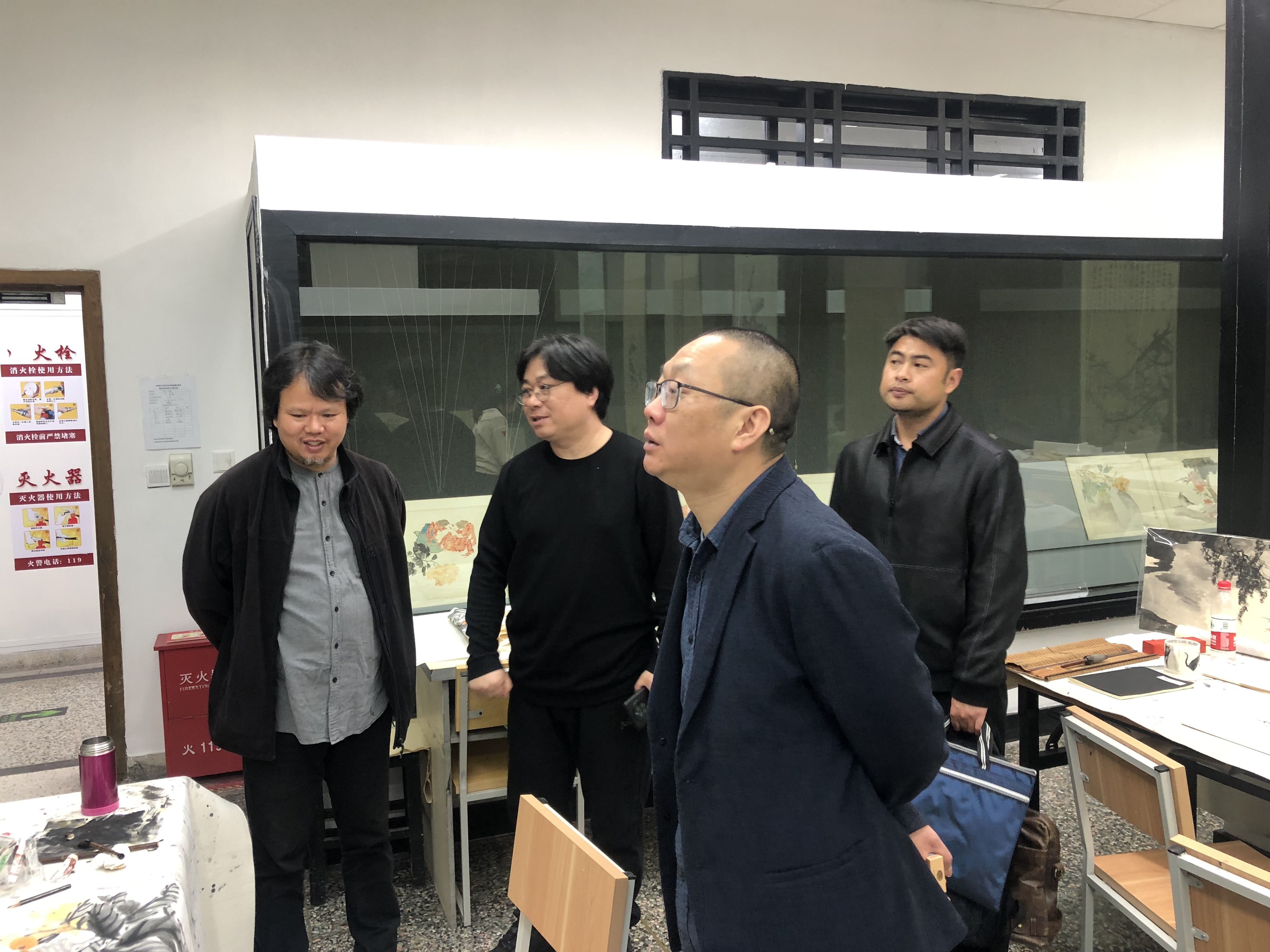 随后,我院一行在王一飞处长、封治国副处长的陪同下,参观了中国华亿平台绘画艺术学院国画教学临摹室、油画系教学工作室、藏画室、版画系、壁画系等教学空间,双方对课程设置、专业教学、人才培养等作了进一步的沟通与交流。