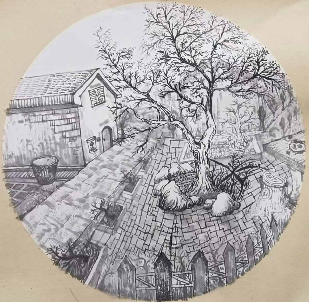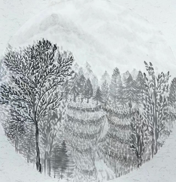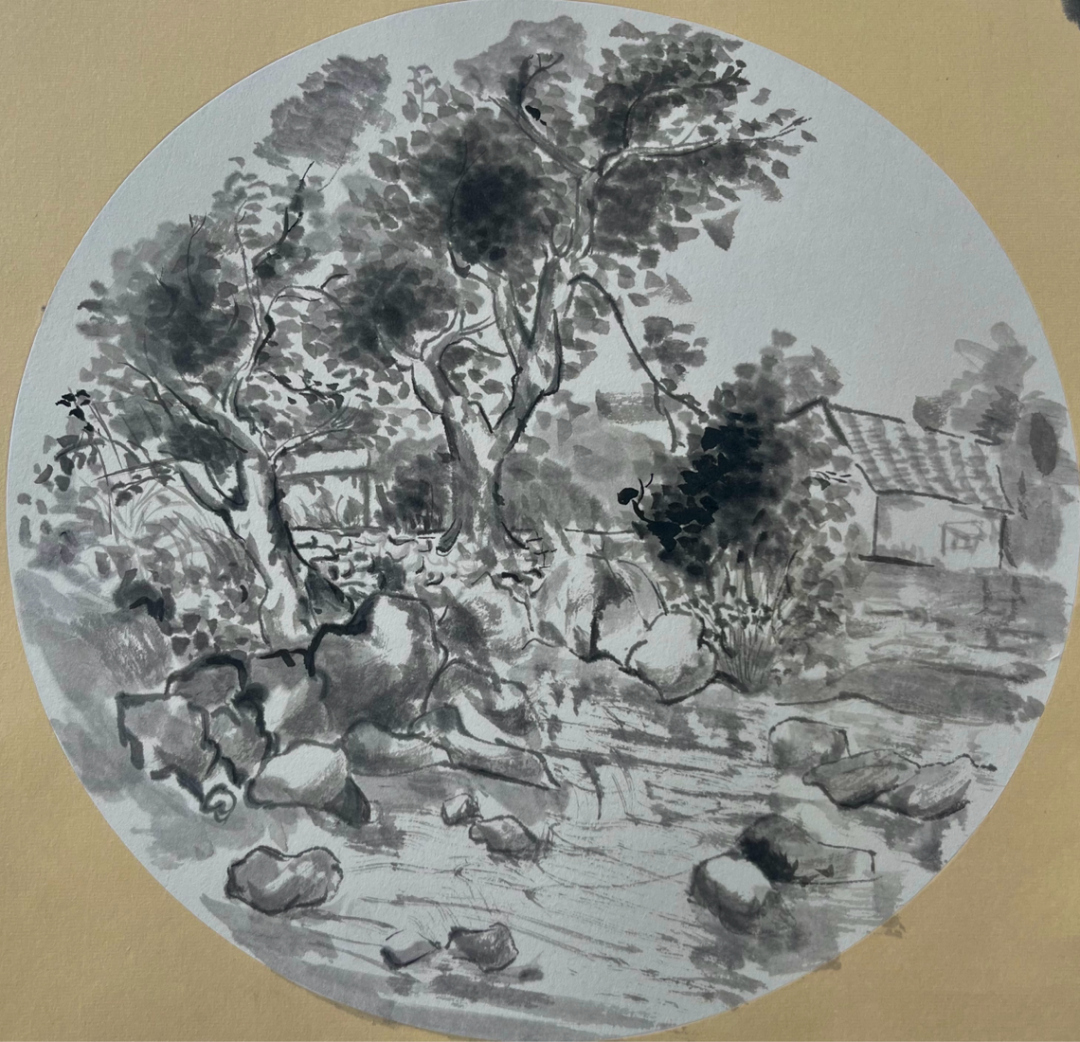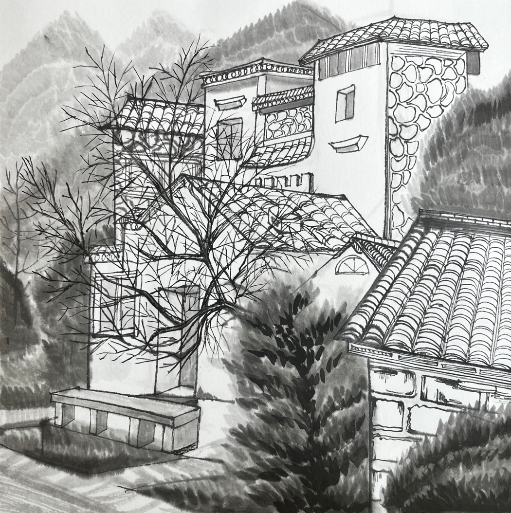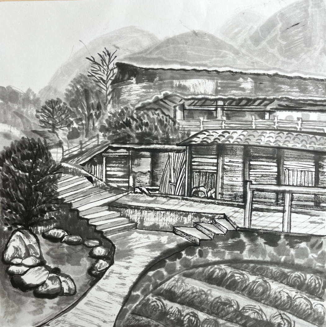 这是我的第一次户外写生,收获很多,感触很深。以第一视角亲近大自然,学会了发现大自然中的美,并将自己的所见所感都绘于纸上,用线条去绘制,用墨色去挥洒。