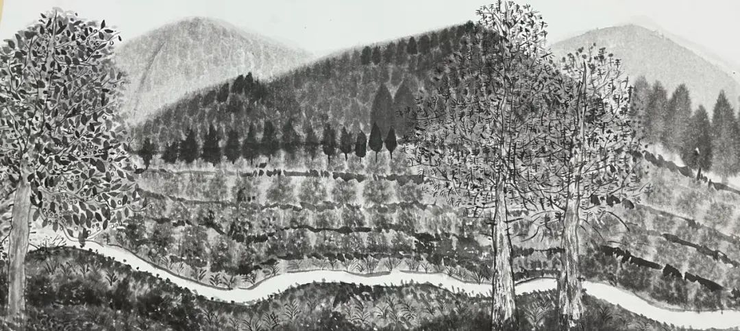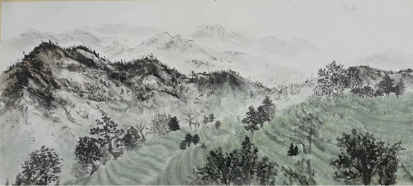 远离了城市的喧闹 ,走进陌生的环境,用手中的笔、碟中的墨,将眼中秀丽山水描绘下来。