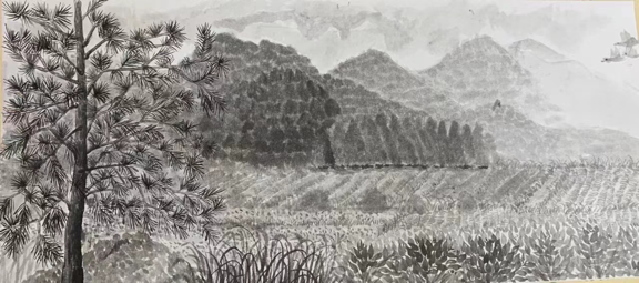 在尚老师的细心指导下我对水墨的理解更加进益,大局观、墨分五色、石分三面、山的画法、物与物的关系……让我看到更多国画的魅力与深奥,情不自禁的为之着迷。同学们也互相打成一片,熟悉了起来,也在我困难的时候帮助我,在我犯错时包容我,谢谢亲爱的同学们。