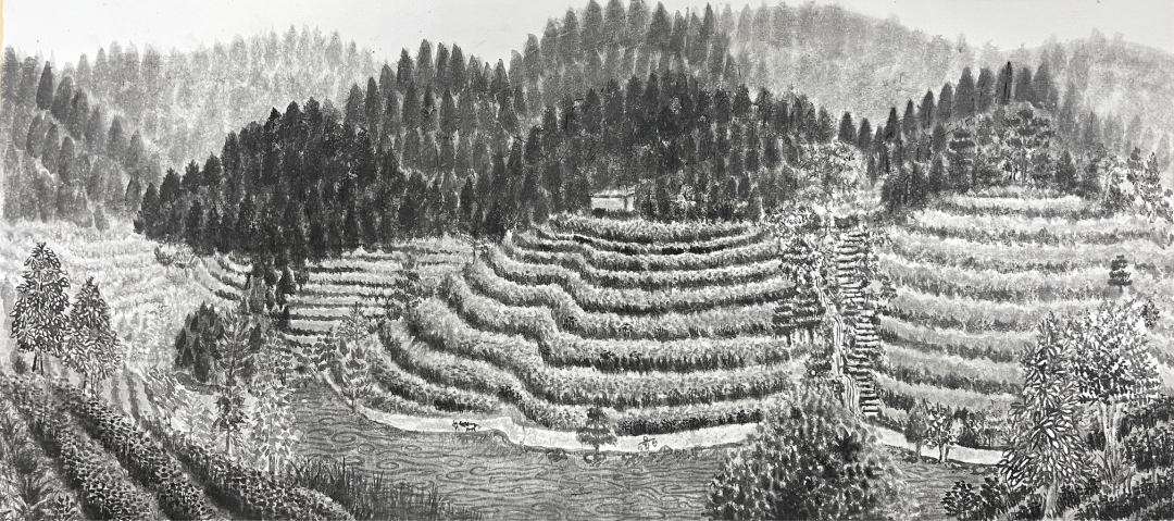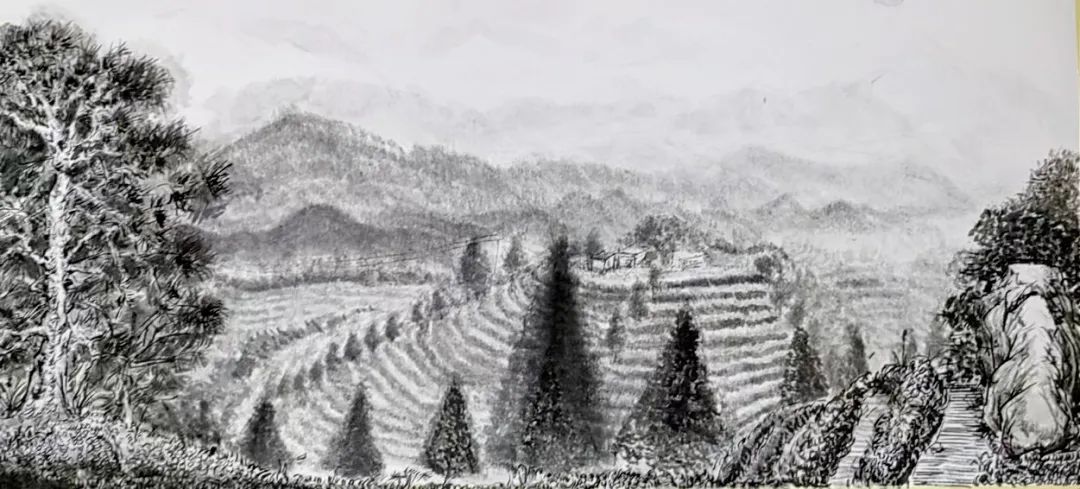 阴雨连绵,不绝心晴。去了小镇,登过峰顶,游览茶山。虽然连着几天都是阴雨,但是也终有拨云见雾见天晴的时候。虽然这次的写生有些短暂局促,但也不妨留下愉快而轻松的体验。