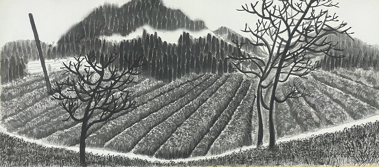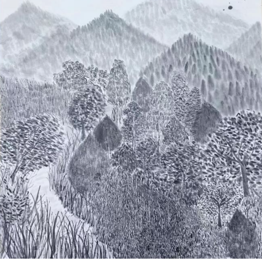 国画系大一的学生进大学前基本上没有摸过毛笔,对中国画的笔墨技法以及造型特点和语言表现都不甚清楚,但是对于画画的人来说,对审美的感知能力远比技术更为重要。爱美之心人皆有之,绘画专业的学子更宜先有审美之旨。传统绘画有诸多程式化的地方,如不写生会导致被古人提炼出来的语言所束缚,从而代替了自己的观察和思考,且古人所处农耕时代的环境与今天并不完全相同,譬如我们此行资溪的农田、茶山、菜地在古画中都是回避不画的。师古人不若师造化,不若道法自然。对于画者来说,最重要的是自己不同与他人的、独特的审美和感知能力。虽然大一的学子们技术上还很稚嫩,但是大自然活泼泼的生命力和朝夕变化,南方丘陵地带的春山叠翠和春雨潆潆、蓝雾霭霭,湿漉漉的空气中碧绿的嫩叶和静卧在山脚下的村庄、潺潺的溪水,春天的大自然带给学生们的感动和审美感受,让他们在短短8天的时间里基本上每天下雨也热情洋溢地冒雨描绘这份感动。宾虹先生曾说“夫理法入于笔墨,气韵出于精神。”精神所到,气韵以生;技术虽稚嫩,而美无止境。我想这就是国画专业大一户外写生课程的意义所在。