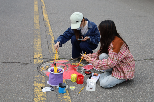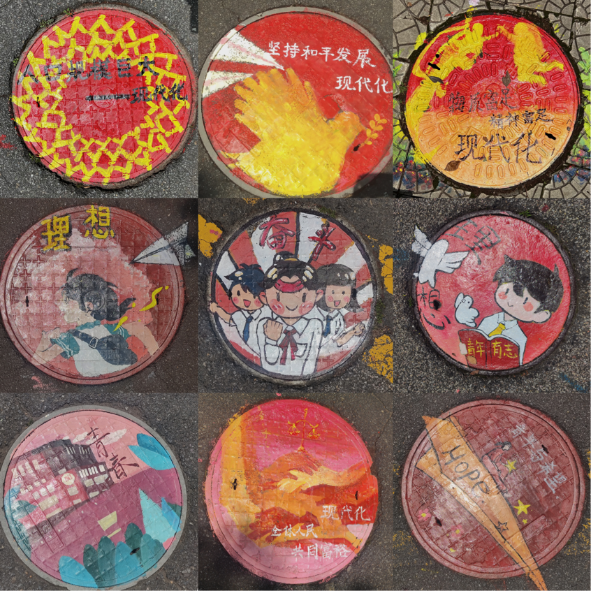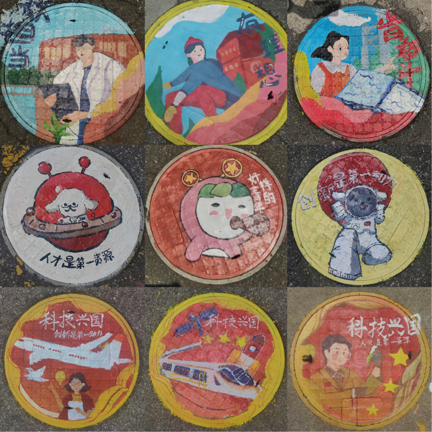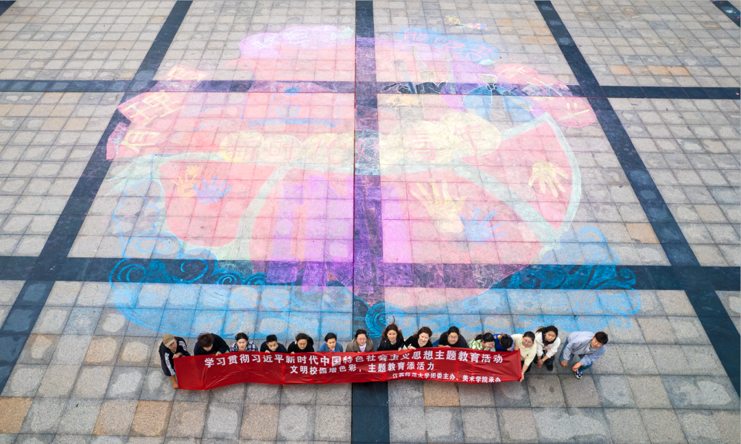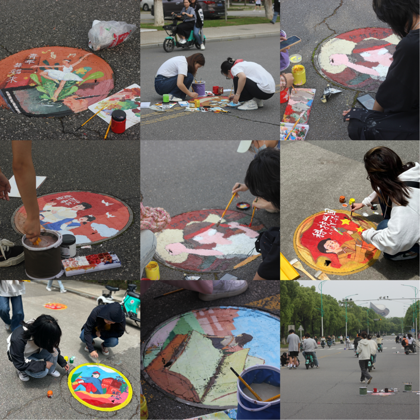 此次活动内容分为“井”上添花校园创意涂鸦活动,以及“勇立时代潮头,争做时代新人”大型涂鸦活动。由华亿平台为起点,沿着惟义楼主干道一路展开,最后以青年文化广场的大型涂鸦为终点。