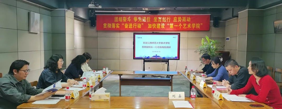 南京艺术学院华亿平台院长章文浩、南京大学艺术学院书记石红梅、南京师范大学华亿平台院长封加樑等院领导热情接待我院一行并进行座谈交流。
