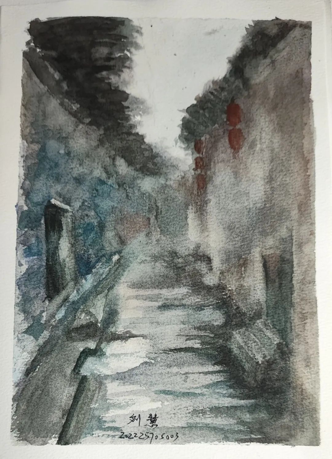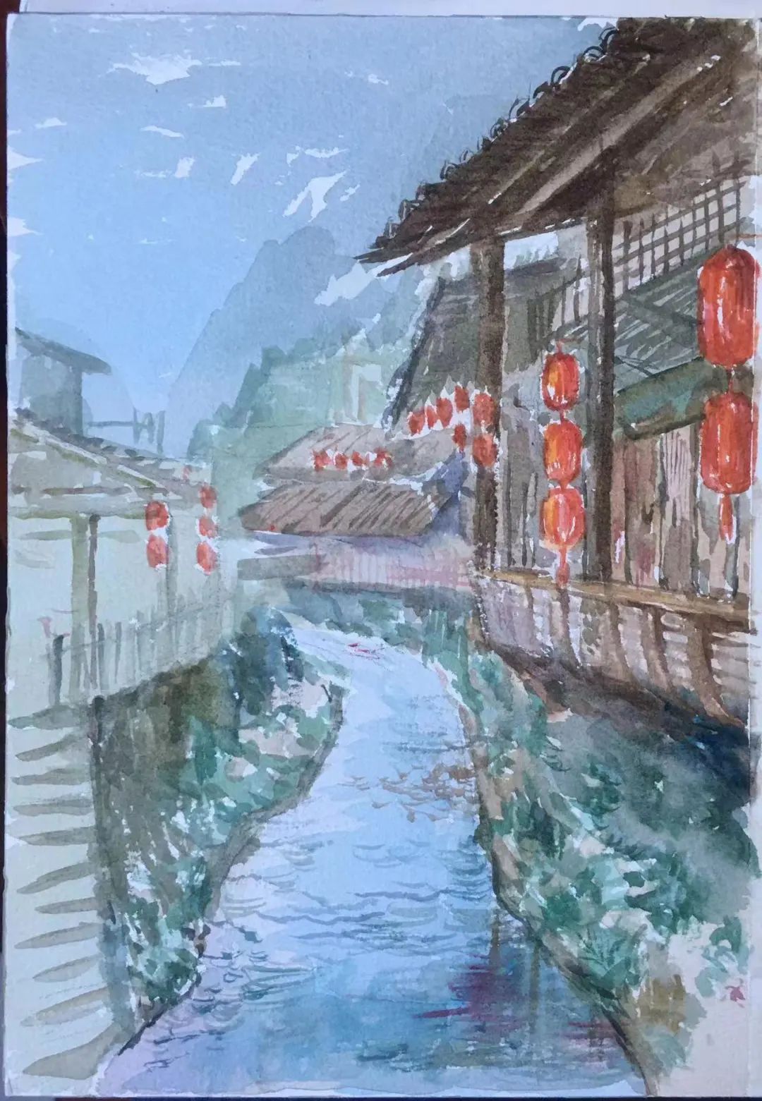 武夷山五夫镇是一个远离尘嚣、民风纯朴的小镇,这里可供同学们写生的地方很多,主要是集中在朱熹故居和兴贤古街。顺着几个不起眼的路口走入,在曲曲折折的前行过程中,可以渐次遇到六个街坊,街中牌坊林立,有“刘氏家祠”、朱子巷和兴贤书院等多处历史遗迹。这些建筑刻满了岁月的痕迹,木阁楼、石台阶、甚至是一砖一瓦都饱含了难言的古朴韵味,令人忍不住驻足细画,想把这里的景致尽收画中。