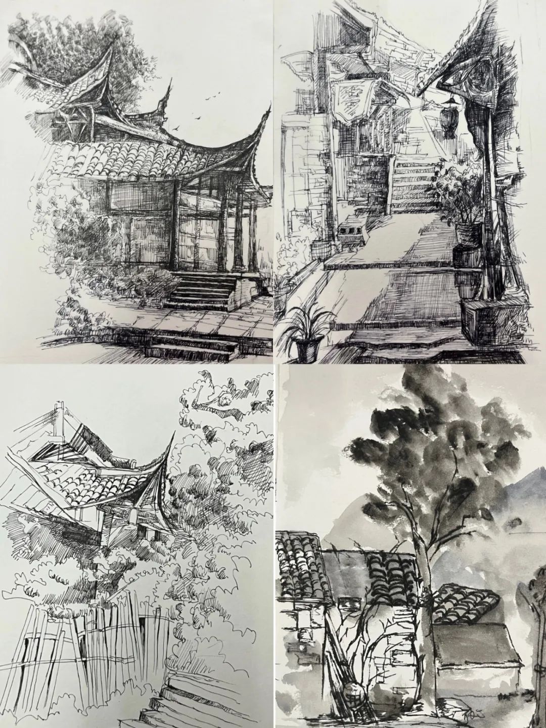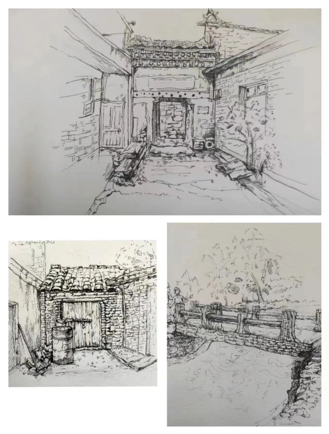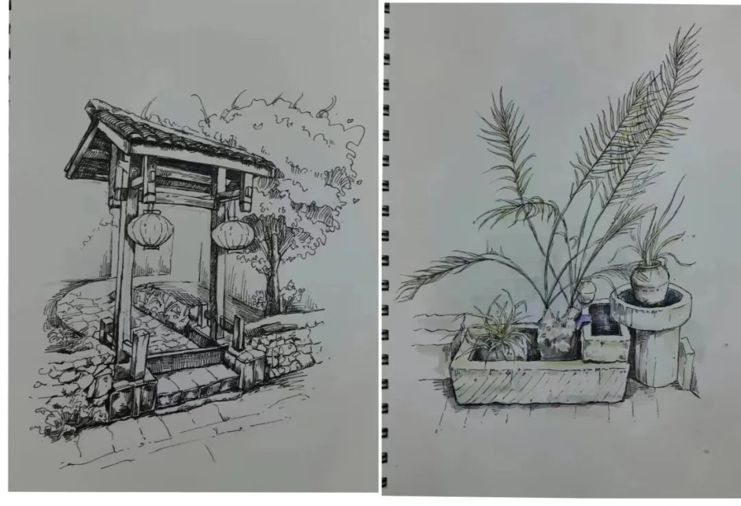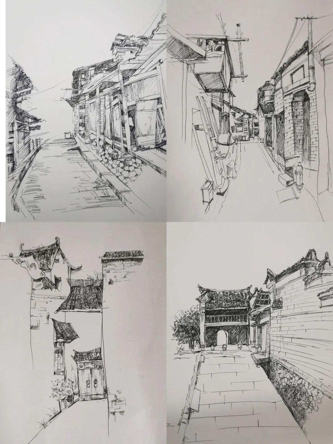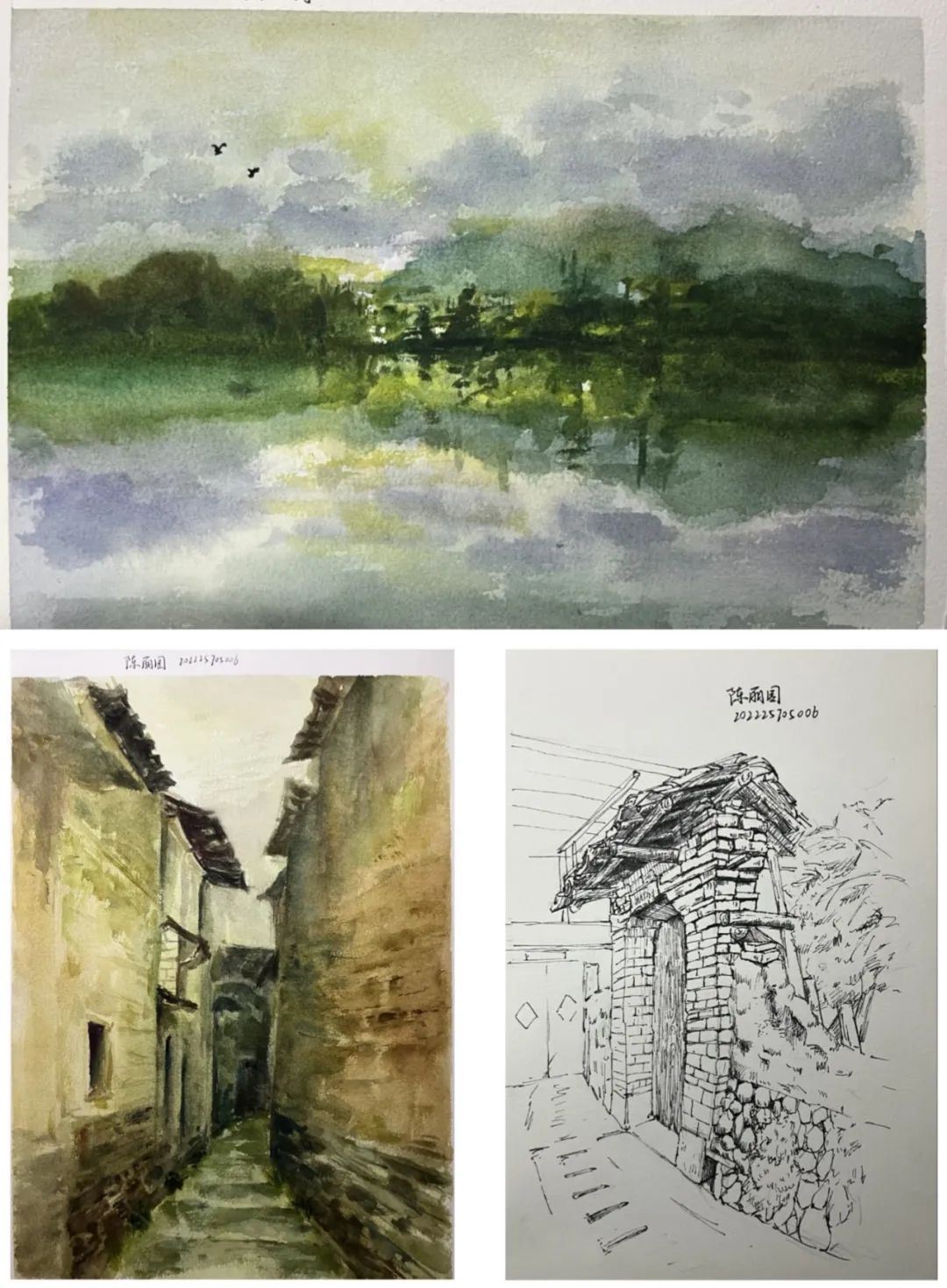 在这些曲折动人的街巷里,大家的灵感和热情也被激发,坐在小小的写生凳或是路旁的砖石上,手执铅笔,用简洁的明暗素描勾勒出建筑独特的光影和古老民居精致的梁柱檩枋;或是用硬笔,快速地描摹出层次分明、错落有致的木楼砖房;又或是以画笔带动丰富的色彩,将那白墙黛瓦、青砖褐土、翠叶黄花画下,将心中对风景的感悟尽诉纸上。