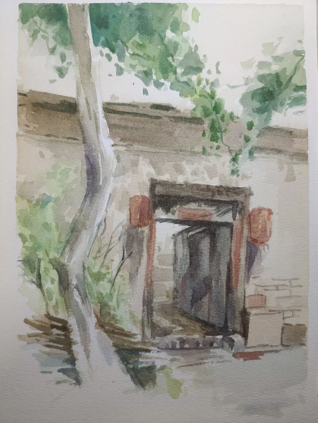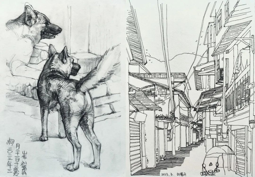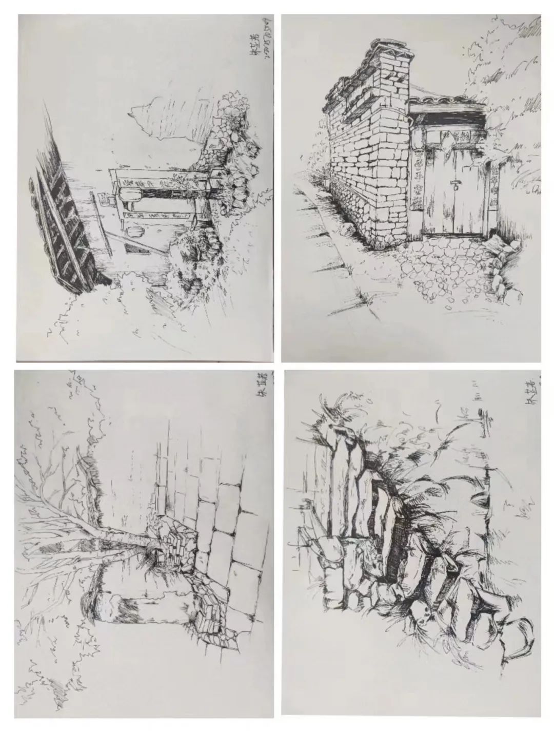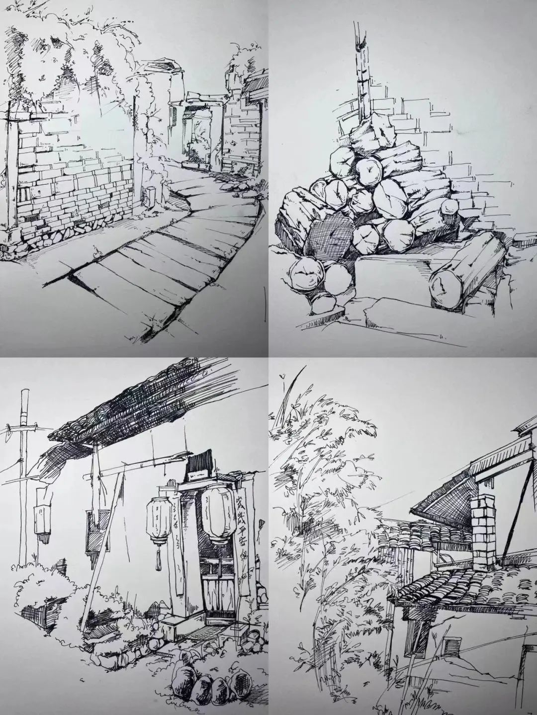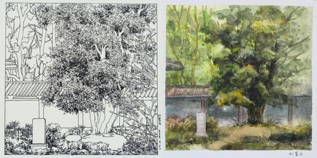 在这些曲折动人的街巷里,大家的灵感和热情也被激发,坐在小小的写生凳或是路旁的砖石上,手执铅笔,用简洁的明暗素描勾勒出建筑独特的光影和古老民居精致的梁柱檩枋;或是用硬笔,快速地描摹出层次分明、错落有致的木楼砖房;又或是以画笔带动丰富的色彩,将那白墙黛瓦、青砖褐土、翠叶黄花画下,将心中对风景的感悟尽诉纸上。