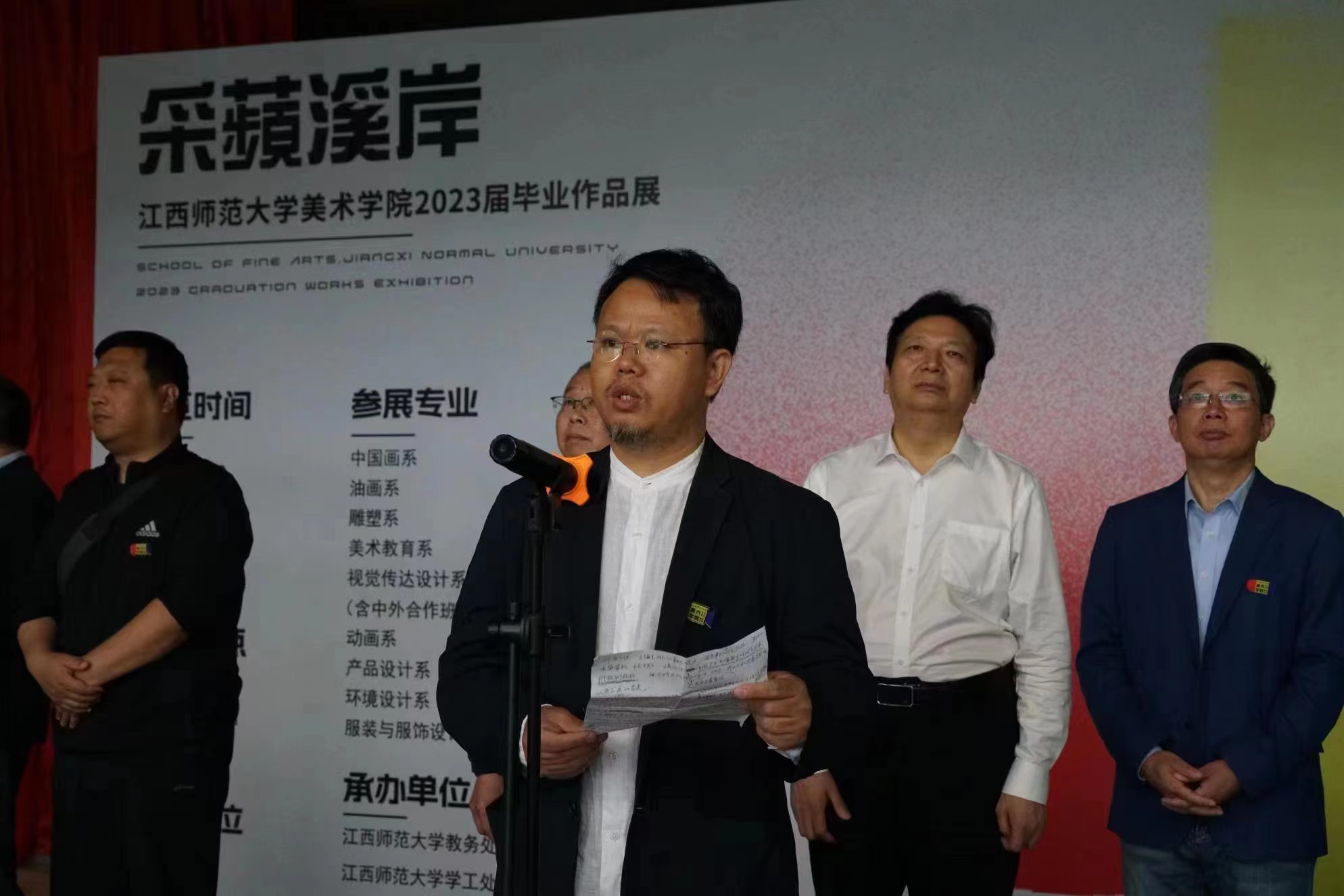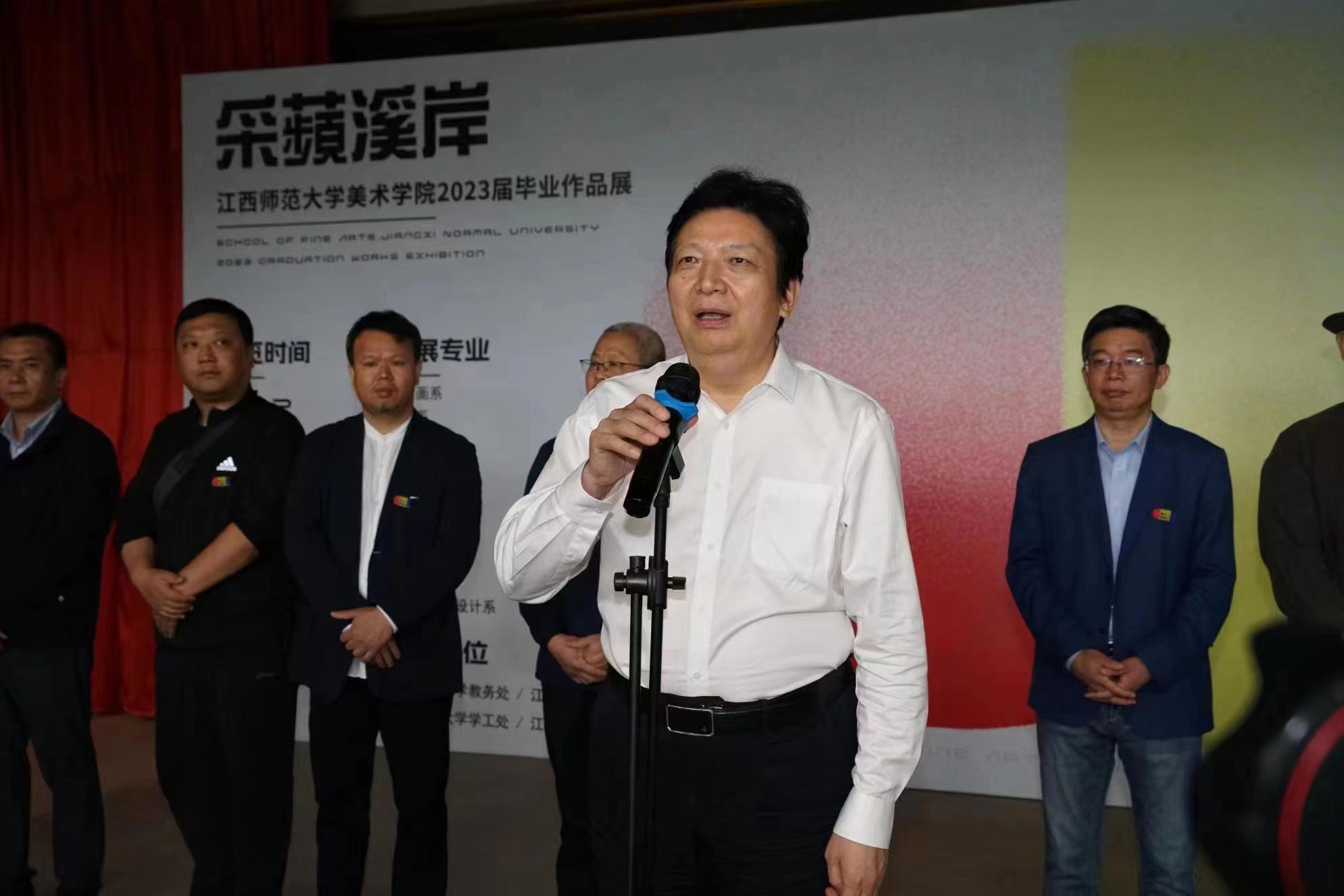 华亿平台院长夏学兵在开幕式上致辞。他希望毕业生们在今后的人生道路上保持对艺术的热爱和初心,一往前行;保持对生活的热爱,对美好的追求;保持高远的理想,旷达的心情,为美术与设计事业作出贡献,为创造美好生活、建设美丽中国不断努力,以聪明和才智贡献社会,实现人生价值,成就自己的美好艺术人生。