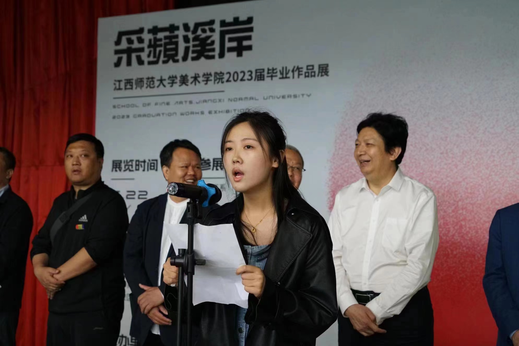 毕业学生代表石洛微感谢学校的悉心栽培与老师的耐心指导。回顾四年,大学的生活让自己成长了很多,通过对大学知识的学习,实现了从认识美、发现美到感受美、创造美的转变,她表示将保持对艺术的热爱,用自己的创造力和想象力,为这个世界创造更美好的未来。