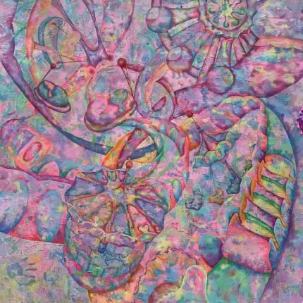 有些爱注定要羁绊一生,包括自我,亲人,朋友,伴侣。那么我的作品就是以此为一个情感系列。用抽象或意象的型去表现不同情感连接的不同物体,并在色彩上自由释放自己,有勇气去接受羁绊,所以有羁绊和爱自由并不冲突。
