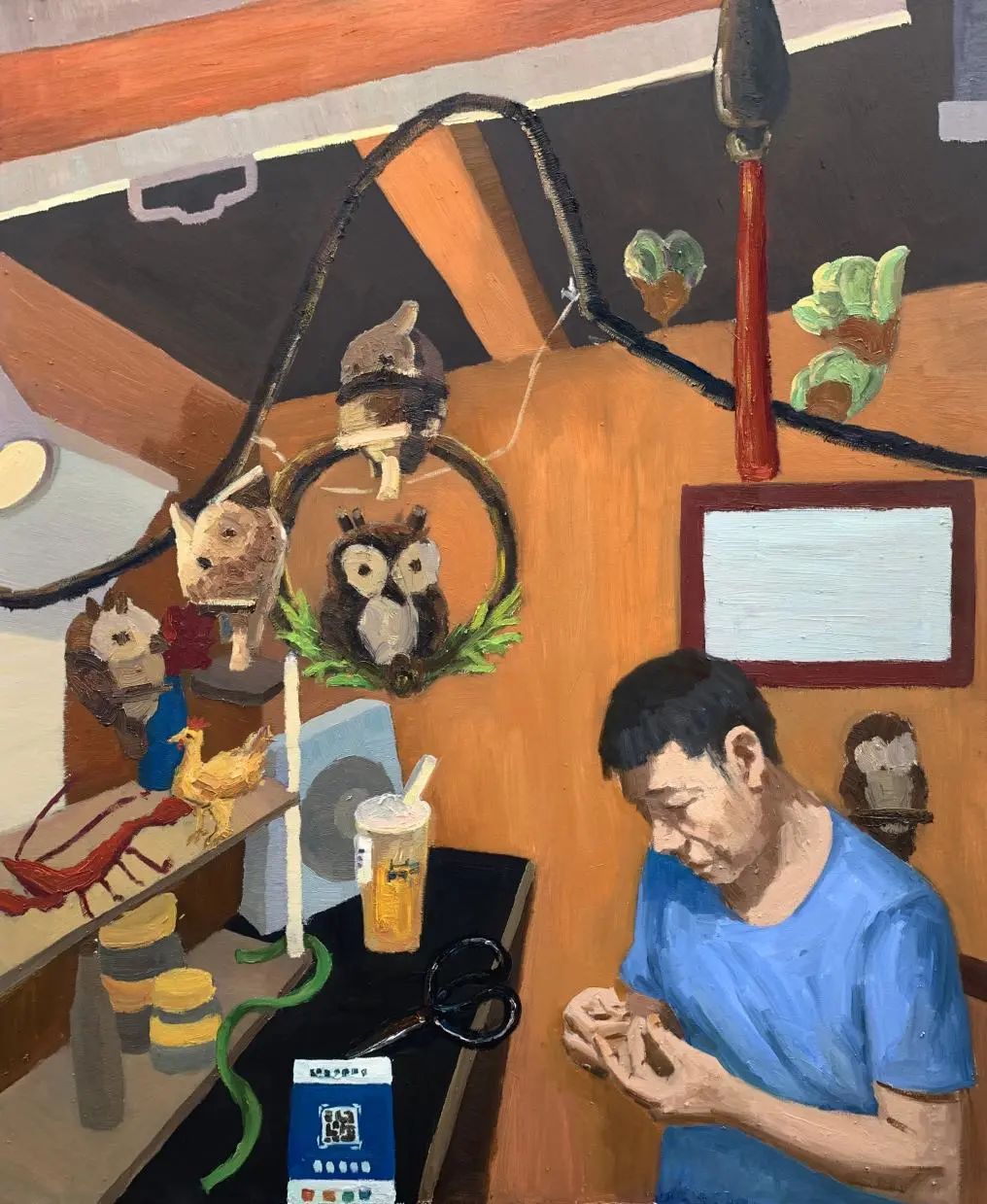 坚持江西师大油画系的传统“钢战”精神,做到“扎基”,静思笃行,保护好燃起的火焰。如此,渺小的我们也可以创造出充满能量的了不起的作品。
