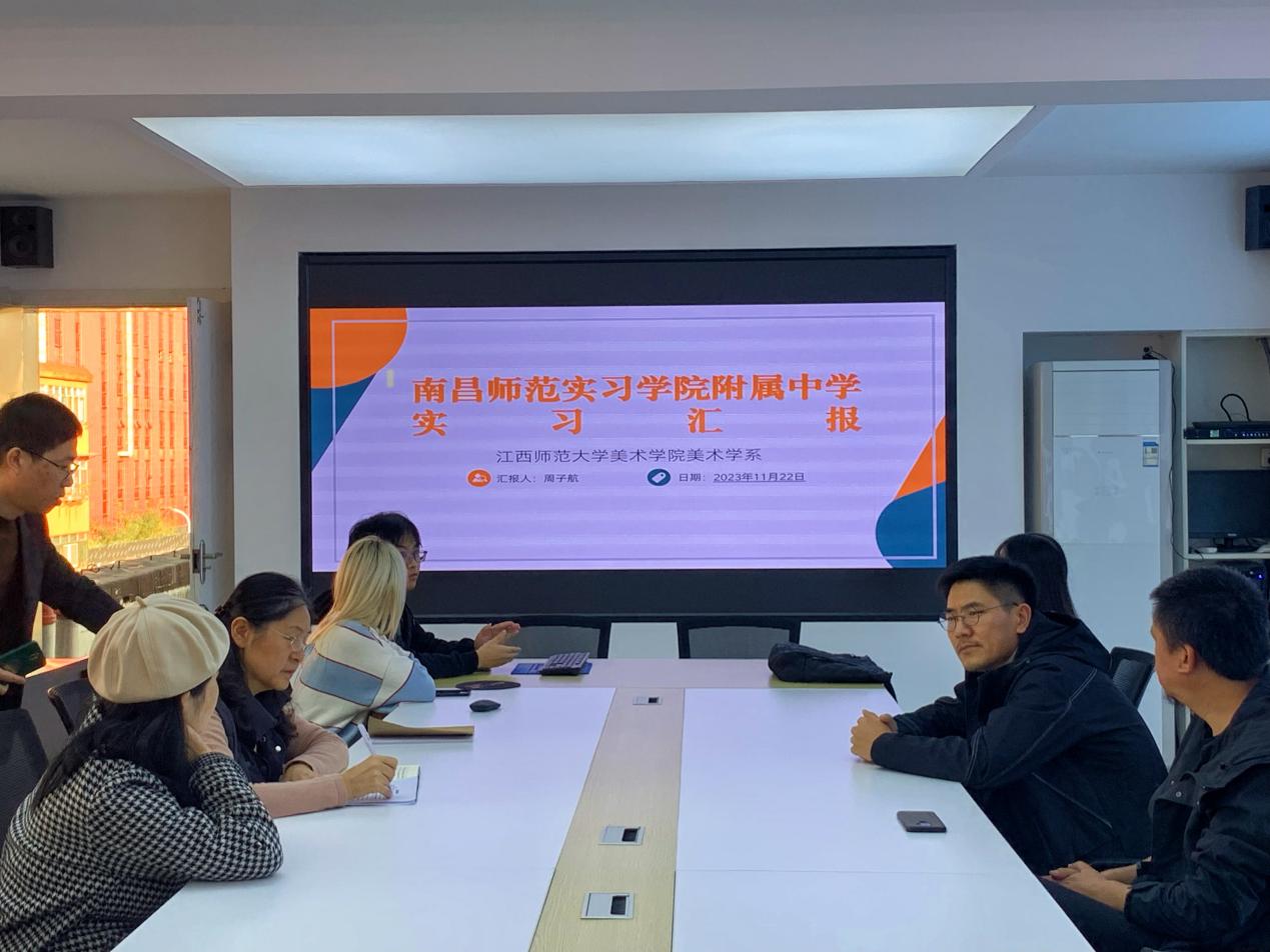 在南昌师范学院附中,学校对苏敉副院长一行的到来作了充分的准备并召开了座谈会。座谈会上那小青副校长首先介绍了学校对实习工作的重视与具体安排,指导教师们详细介绍了实习生的表现,对他们的能力水平及对待实习的态度表示赞赏。周子航同学代表在该校的八名实习生用图文并茂的PPT进行了实习情况汇报,介绍了入校实习以来在该校上课、听课、参与社团辅导与校运会组织等各方面的情况,分析了遇到的问题和处理方式,总结了进步与收获所在。