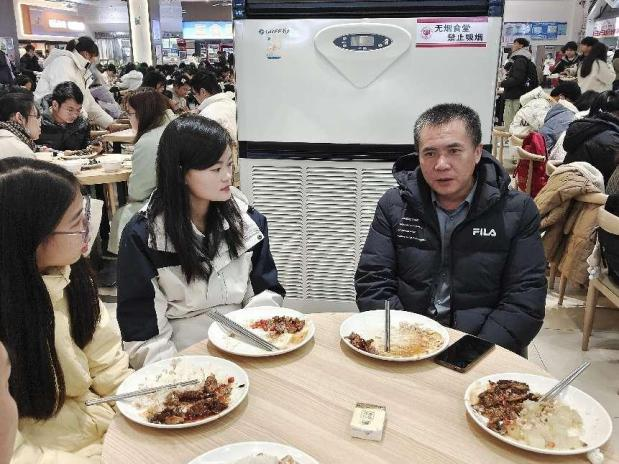 陪餐过程中,学院领导和辅导员亲切倾听、认真回应,不仅对学生们在校衣食住行的多方面情况展开了了解,问询了日常生活中的困扰和不便,并详细回答了同学们关于大学生活和专业发展等方面的提问,向学生们表达了诚挚的关怀。在学院领导的殷切情感和热络的就餐环境下,学生们也不再拘谨,逐渐打开话题畅所欲言。此次“陪餐”为学生提供了一个寻求帮助和表达意见的机会,为良好的师生关系搭建了情感的桥梁,促进了学校、教师、学生的积极互动、良性沟通和切实交流。