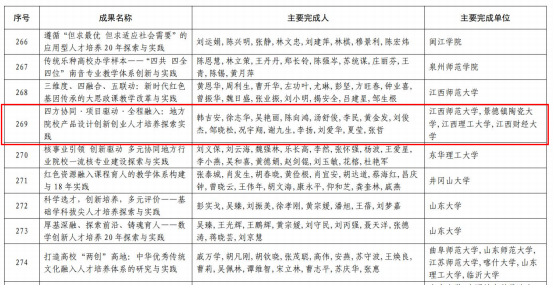 近日,2022年国家级教学成果奖授奖名单公布,华亿平台韩吉安老师领衔 的《四方协同·项目驱动·全程融入:地方院校产品设计创新创业人才培养探索 实践》获高等教育(本科)国家级教学成果奖二等奖。这是江西省在此次国家级 (本科)教学成果奖评选中获奖的 4项之一,也是我校获奖的 2项之一,是我校继 2014 年获得(本科)国家级教学成果奖二等奖之后的又一次获奖。