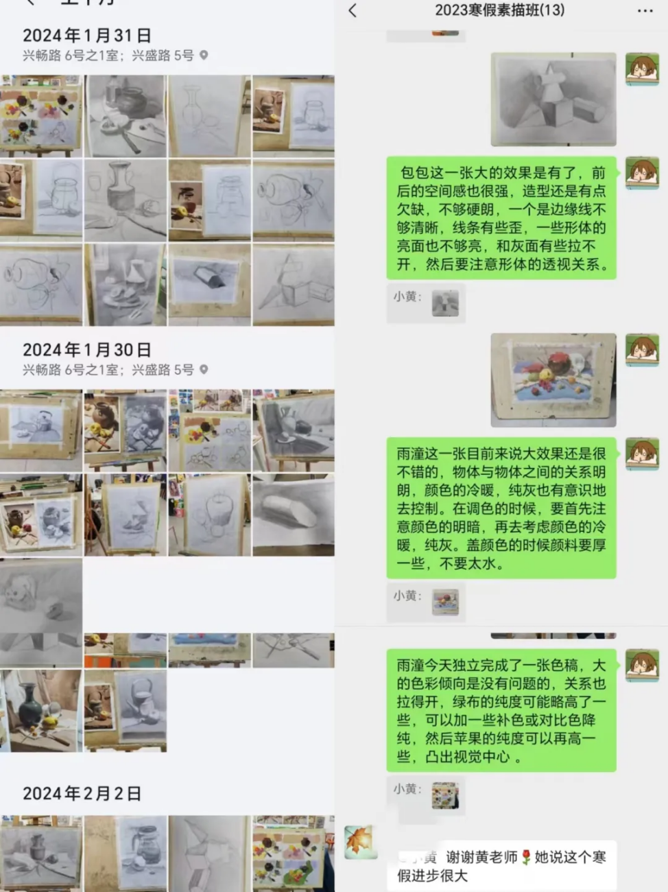 这个寒假到画室帮老师带班,第一次体验到备课,讲评作业的感觉,明明自己也是学生却也有自己的学生的感觉很特别。上课时学生的反响也好,大家都有在进步,尤其是学生家长的赞扬让我很有成就感。上课时每个学生的进度都不一样,需要了解每一位学生,并总结,改善自己的课程。总之是一次难得的体验。