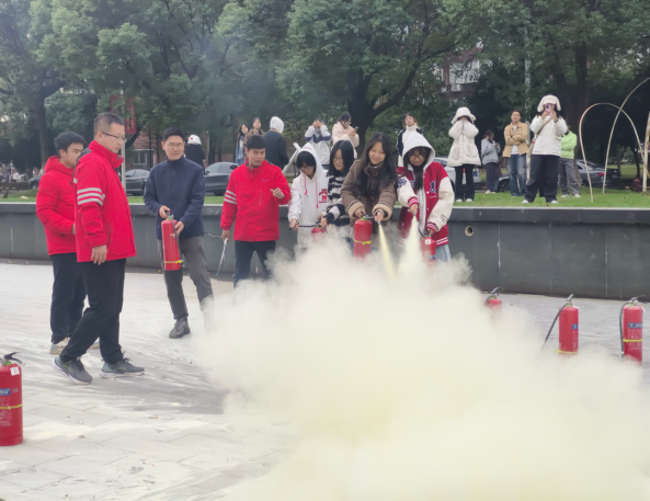 在保卫处工作人员的悉心指导下,师生们纷纷拿起灭火器,按照“提、拔、瞄、压、扫”的规范动作进行操作。他们迅速拔掉了安全销,紧握喷管对准火源根部,用力按下压把,干粉随即喷射而出,迅速扑灭了熊熊燃烧的火焰。通过亲身体验,师生们不仅学会了灭火器的正确使用方法,更深刻理解了消防安全的重要性,以及面对火灾时保持冷静、迅速行动的重要性。