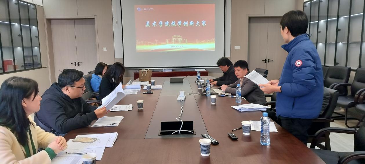 11 月 26 日下午,美术学院教学创新大赛在学院二楼会议室顺利召开。此次大赛由韩吉安副院长主持,邀请了全国教学创新大赛决赛评委南昌大学许详云教授,教育学院全国教学创新大赛二等奖获得者苏兰老师作为评审组特邀专家,夏学兵院长、饶乐副院长、程国亮、刘俊杰、汪笑楠、聂琰六位为评审组成员。