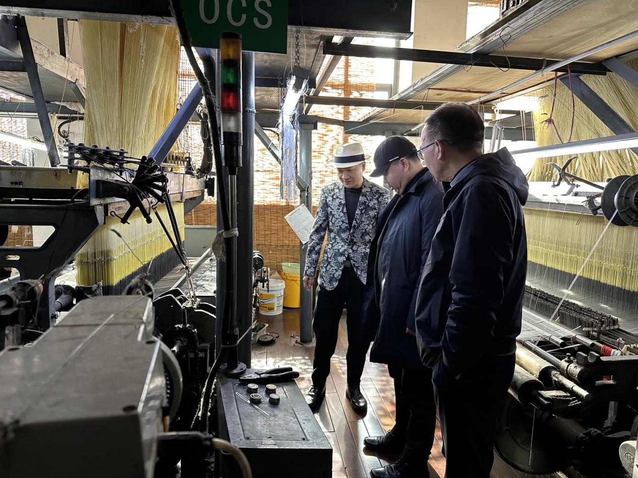 夏学兵院长一行听取了香港高等商学院院长吴波教授关于数字化发展对服饰类传统时尚行业就业环境影响的汇报。在鼎天时尚董事长柴方军的引导下,实地参观了该企业的纺织样板车间、图样研发中心、产品展示区和提花工艺博物馆。在座谈交流中,柴方军先生介绍了提花纺织工艺与松江纺织产业的发展历史和公司的创办历程,详细讲述了公司自身和江浙地区同类企业对人才招聘的基本条件、人才需求的专业结构和人才筛选的能力偏重。夏学兵院长简述了我院办学历史和办学特色,着重介绍了学院近年在学科设置、教学体系、育人模式、校企融合等方面的改进和成果,展现了学院在社会需求变化和产业变革下对优化人才培养的积极应对。