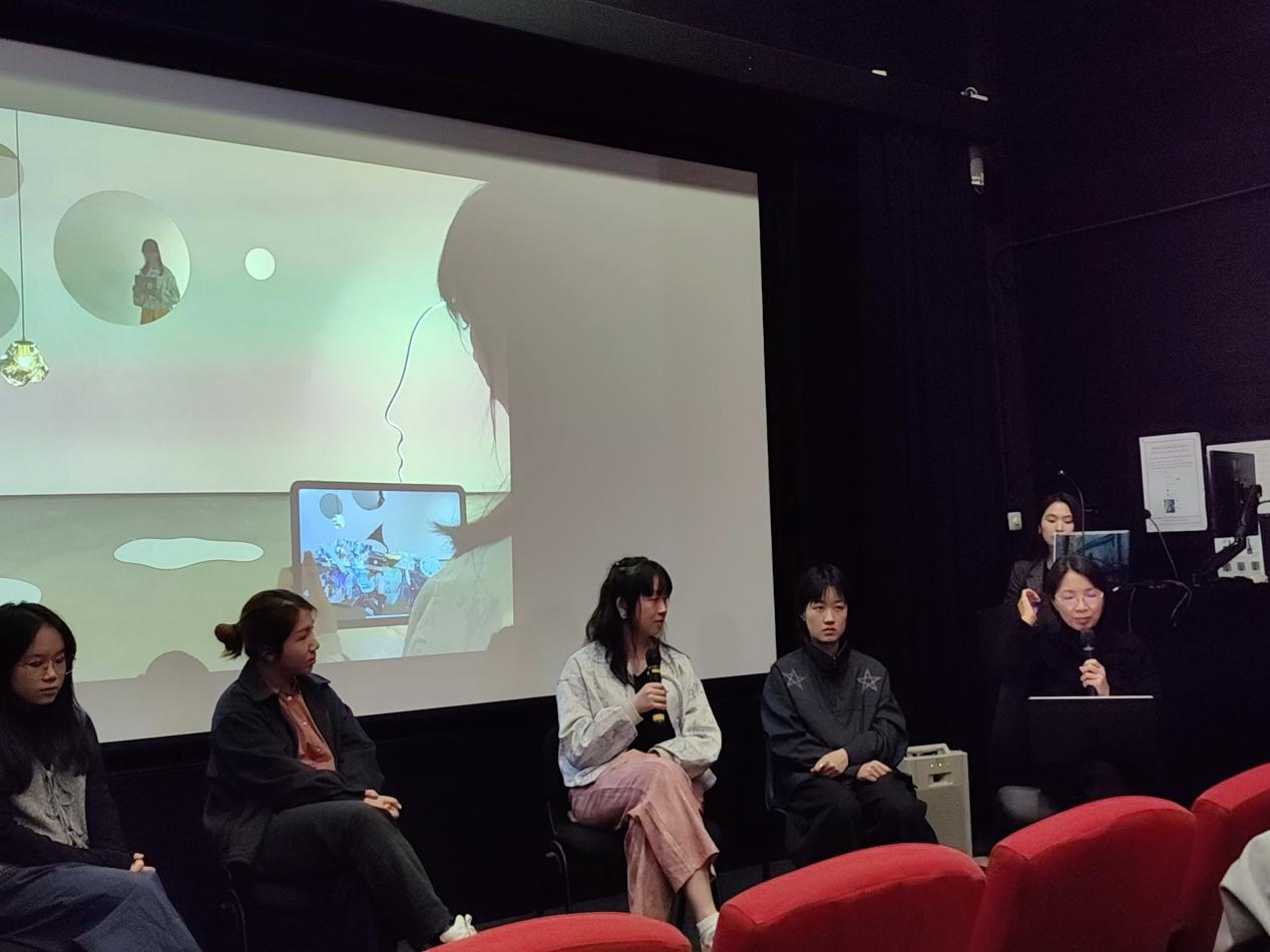 在艺术家对谈部分,张雨嘉同其他4位参展艺术家以及策展人桂仁、Ryo Ikeshiro同主持人也是展览的制作人Ann Mak一起,共同探讨了本次展览的作品内核。